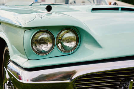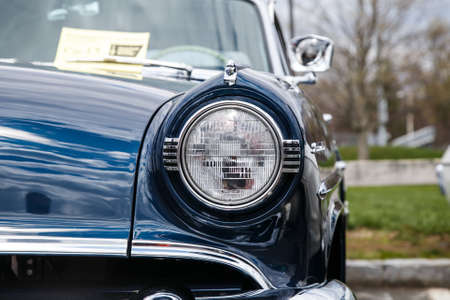Retro car detail, Headlight of old vintage american car
