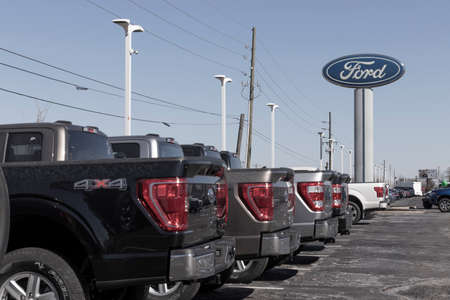 Brownsburg - Circa March 2022: Ford Motor Company logo. Ford manufactures the Mustang, Escape, Explorer and the best selling F-150 and F-Series trucks.