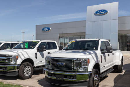 Kokomo - Circa May 2021: Ford F250 Super Duty display at a dealership. The Ford F-250 is available in XL, and XLT models.