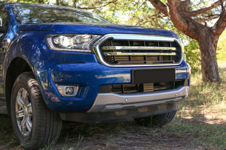 Modern pickup truck in countryside