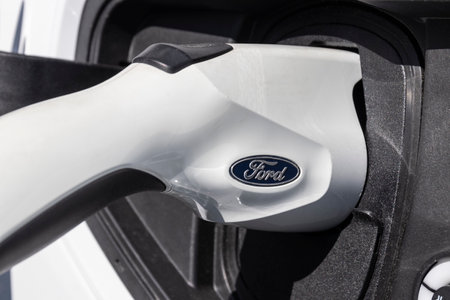 Indianapolis - Circa August 2019: Ford Car and Truck Dealership. Ford sells products under the Lincoln and Motorcraft brands