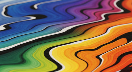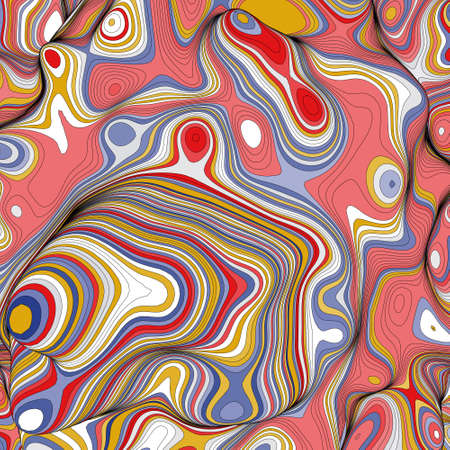 A vibrant, abstract macro background featuring swirling, psychedelic patterns in a rainbow of colors. The textured, 3D surface has metallic or glittery paint in blue, green, yellow, and red, creating a dynamic, flowing design. The intricate lines resemble topographic maps or liquid art.