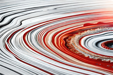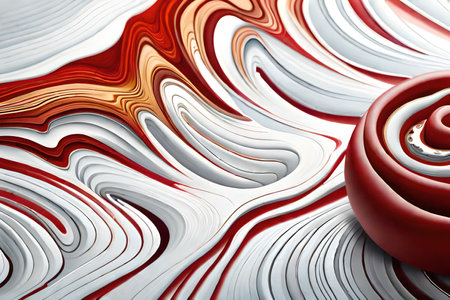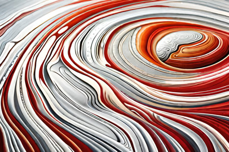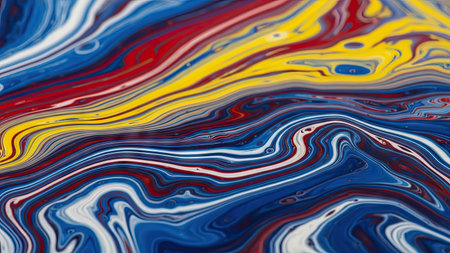 This abstract presents a dynamic composition of fluid characterized by flowing lines and energetic swirls of red, white, and blue paint. The colors blend and contrast, creating a sense of depth and movement. The organic shapes and marbled effect offer a rich visual texture, making it a versatile for web backgrounds, or artistic presentations that require a bold and creative aesthetic.