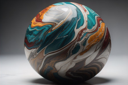 Colorful marble ball on a solid colour background. Close-up. ai generative