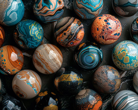 A collection of crafted planetary spheres capturing the essence of different celestial bodies in our solar system, with vibrant topographies and intricate atmospheric elements meticulously depicted
