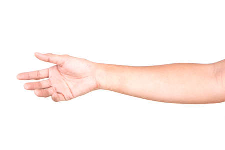 Hand open and ready to help or receive. Gesture isolated on white background with clipping path. Helping hand outstretched for salvation.