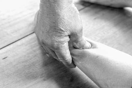 Close up woman foot massage by old man's hands