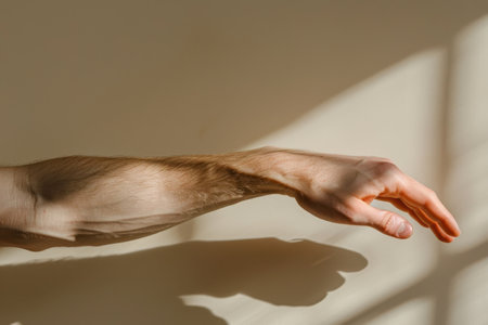 A mans arm is shown with another arm, against a plain white background. The two arms are parallel to each other, showcasing a sense of connection and unity.