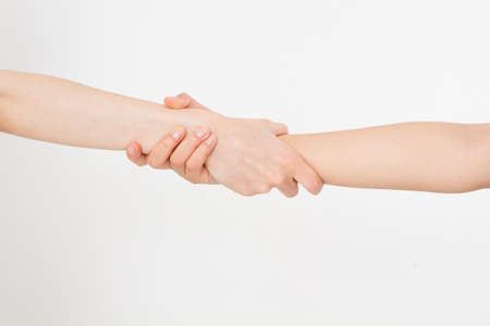 Two hands isolated. Helping hand to a friend. Copy space. Rescue or helping gesture of arms.