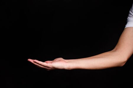 Left arm isolated on black, Male arm part of body, wrist tendon