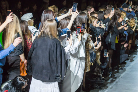 KYIV, UKRAINE - FEBRUARY 2, 2019: Audience watching the show during Ukrainian Fashion Week 19-20 at Mystetsky Arsenal in Kyiv