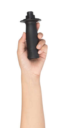Detail of A Black Hand Grip Exercise Tool in The White Background with Oblique Top Shot, Landscape Mode and Minimalist