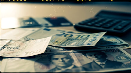 A close-up image of a cash exchange between two hands in a modern financial setting showcases the process of currency transfer and economic transactions in a professional atmosphere.