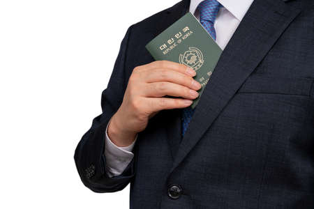 Thai passport with Korea Won currency bank notes on white