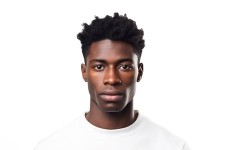Cropped image of handsome young black man looking a side on white background.