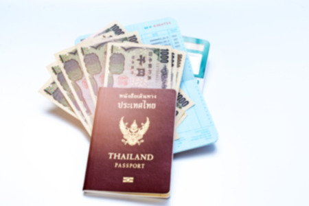 Thailand Passport and pile of Thai bath money (passport)
