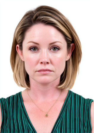 Photo of woman for passport or other document on white background, set