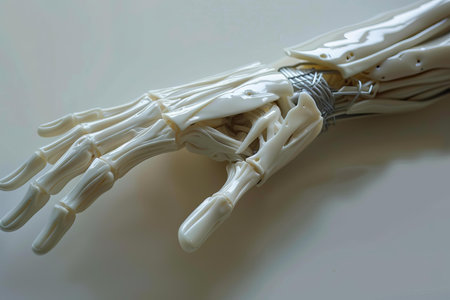 Model of a human hand showing the inner workings of the carpal bones, ligaments, tendons and muscles