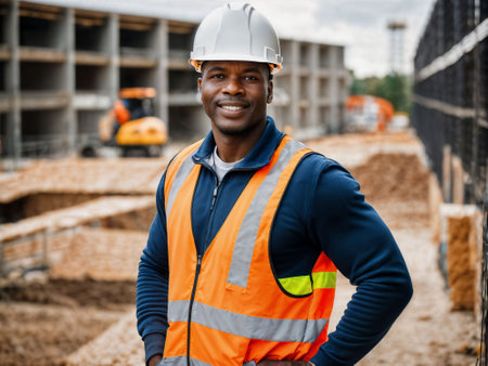 Portrait of an African-American construction worker at a construction site