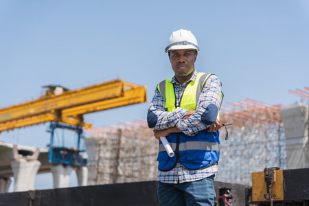 African american construction engineer in hard hat at work for optimal search relevance