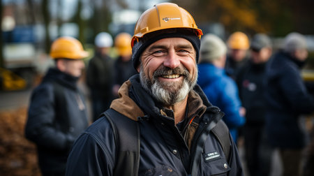 Joyful Team of Construction Workers at Work. Generative AI