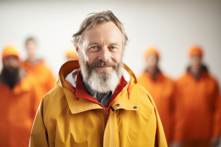Portrait of a senior man in a yellow jacket with a gray beard