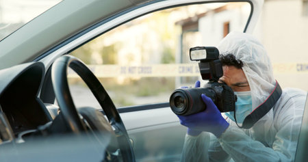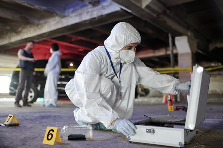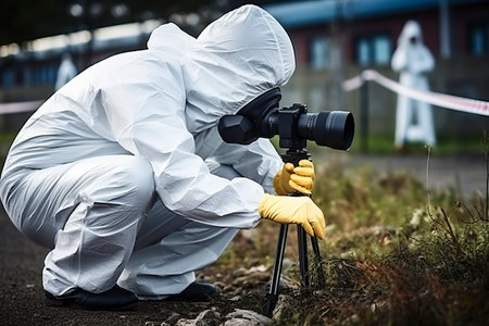 Detailed Crime Scene Investigator Capturing Evidence Photos for Forensic Analysis and Documentation
