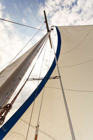 Looking up to Mast and sail against with beautiful blue sky cloud background at luxury sailing yacht in sunny day,Phuket,Thailand