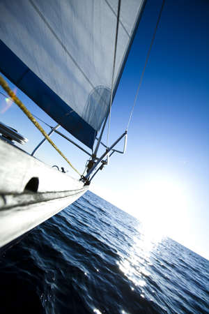 Sails of a sailing yacht in the wind sailing on the sea at sun light. High quality photo