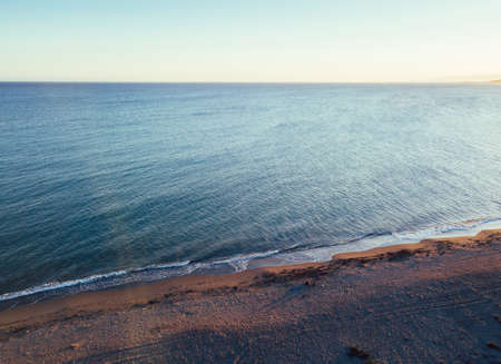 Sand beach with white sea soft wave on top view for assembling an article about travel in summer holiday or ocean coast nature.