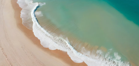 Aerial view of a beautiful sandy beach with turquoise ocean waves