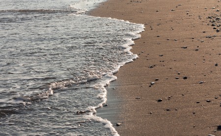 Soft wave of the sea on the sandy evening beach.Soft focus,blurred image.Copy space.