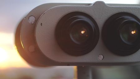 Binoculars for tourists on the background of the sunset sky.