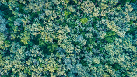 Aerial view of a green forest. Top view from drone.