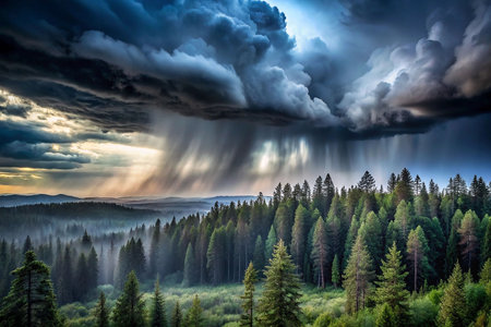 Mountain forest rain storm dramatic sky