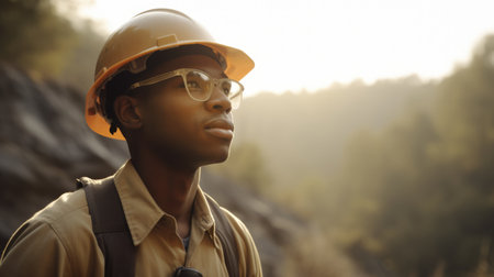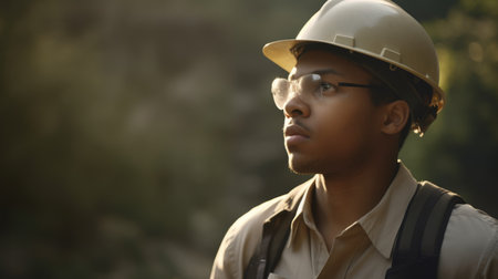 Environmental Engineer Male African-American Young Adult Developing strategies to minimize pollution and conserve resources in Natural habitat. Generative AI AIG22.