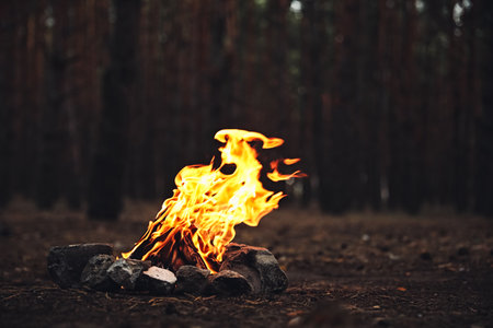 Bonfire scene burning in the forest