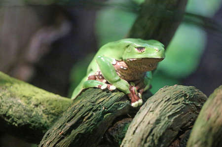 Australian green tree frog Litoria caerulea in a natural environment resting on a tree