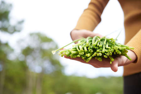 Ripe of green garlic sprouts farm.