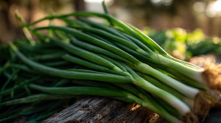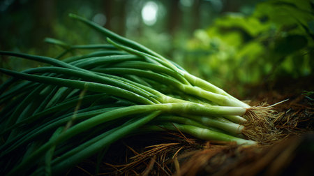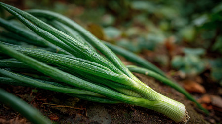 Fresh Spring Onions on Earthy Background: A Vibrant Culinary Ingredient