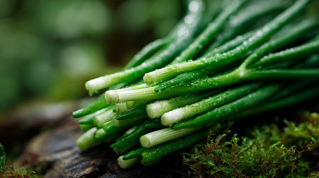 Freshly Cut Chives with Dewdrops, Displaying Culinary Herb Beauty in Nature