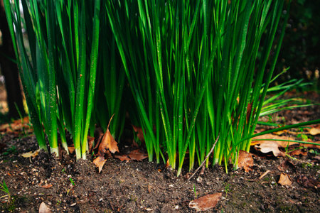 Vibrant lemongrass growing in rich soil long fragrant stalks standing out