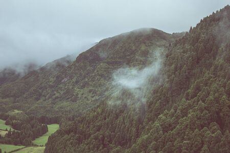 view over cloudy forest on Sao Miguel Island, Azores, Portugal