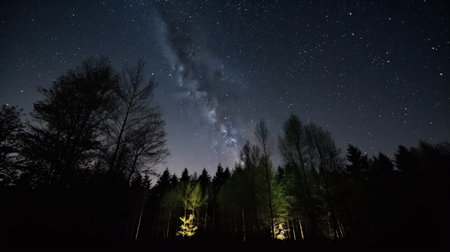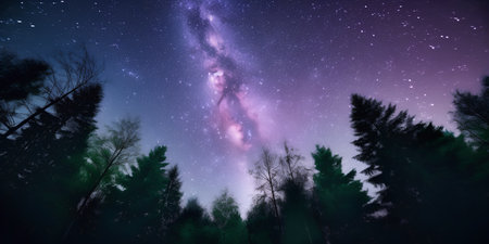 Night sky with stars and milky way over coniferous forest ai generated