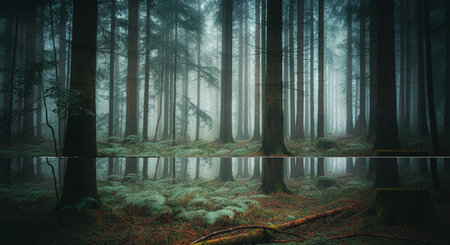 Discover the tranquil beauty of a serene forest lake, surrounded by towering evergreen trees and enveloped in mysterious fog. This peaceful scene invites reflection and relaxation in a captivating natural environment rich in greenery and calm waters.