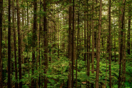 Sunrays filtering thru the forest foliage in a Vancouver park, British Columbia, Canada.