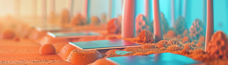 A serene digital forest scene, combining nature and technology with vibrant colors and futuristic elements.