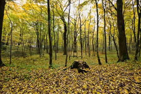 Autumn forest. Fallen leaves in the autumn forest. Autumn landscape
