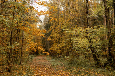Autumn forest. Pathway in the autumn forest. Autumn landscape