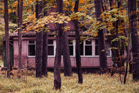 Cottages in an abandoned resort in the middle of the forest. Poland
